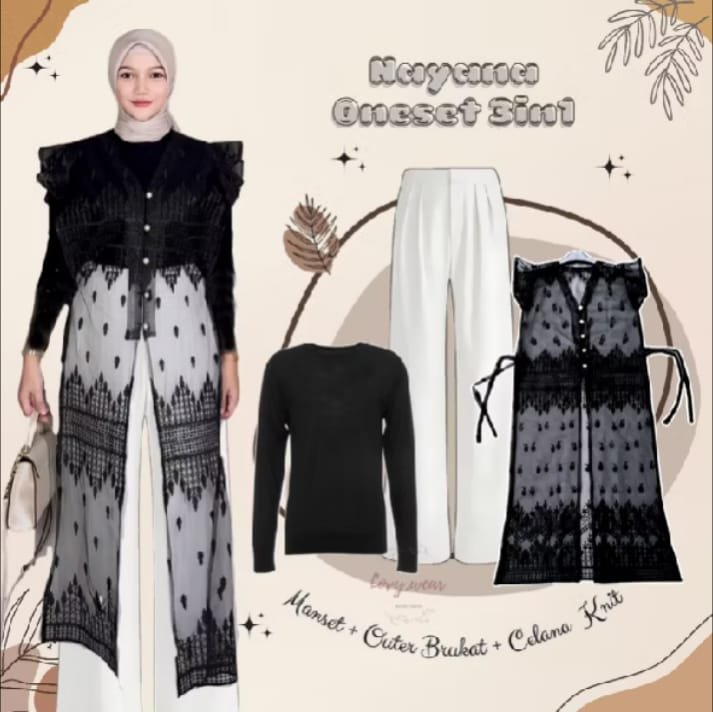 One Set Wanita Kekinian (Outer + Celana Knit + Manset Lengan Panjang)